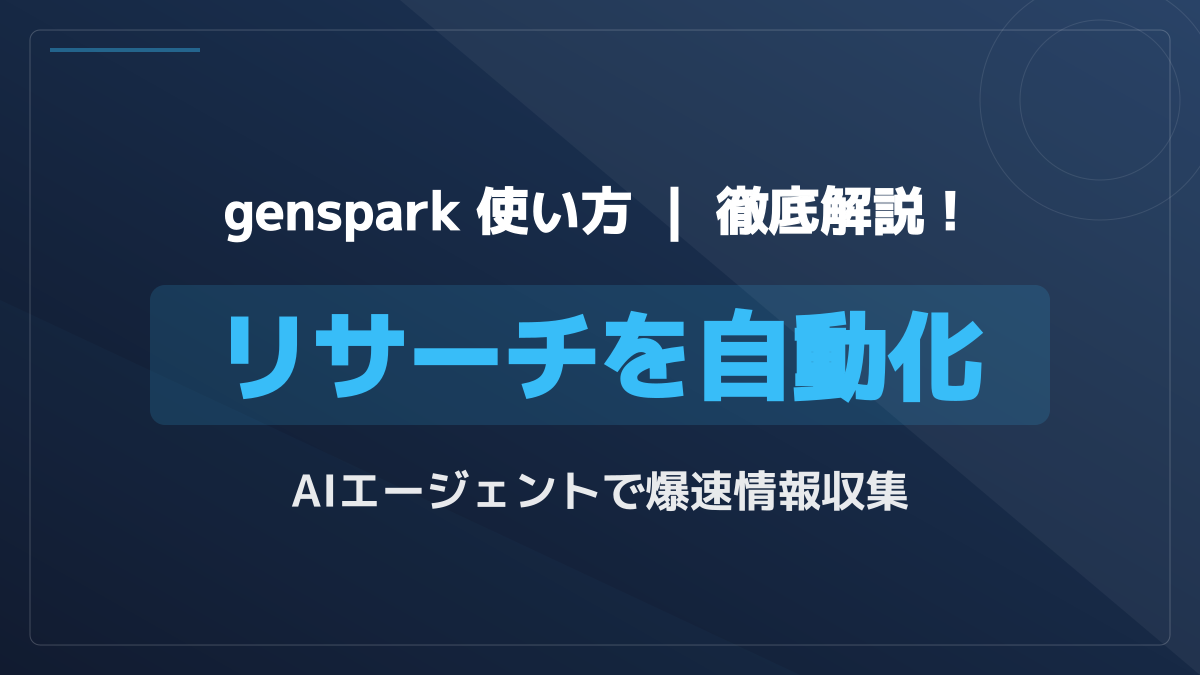 情報収集や競合分析に時間を奪われていませんか?本記事では、複数サイトを自律的に比較・統合する「Genspark スーパーエージェント」や「Genspark アプリ」の実践的な活用法を解説。リサーチからレポート作成までを自動化し、作業時間を半減させる正しい使い方と3つの手順がわかります。